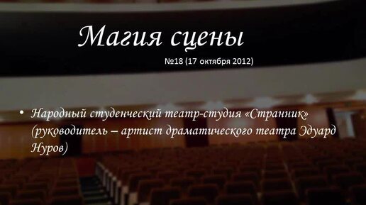 Магия сцены: театр-студия "Странник" под руководством Эдуарда Нурова. Выпуск 18