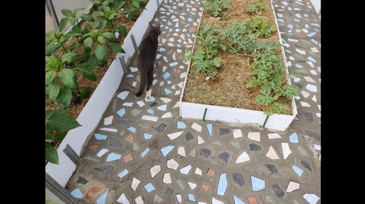 Дорожки между грядок. Один человек за 4 часа сделал эти дорожки. Дорожки из колотой плитки.