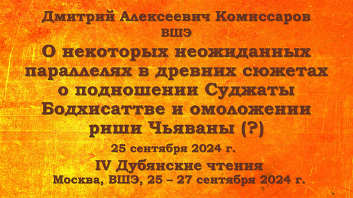 Конференции. IV Дубянские чтения. О параллелях в сюжетах о подношении Суджаты Бодхисаттве и омоложении риши Чьяваны. Д. А. Комиссаров