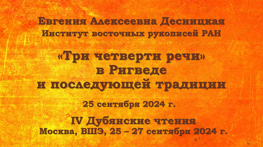Конференции. IV Дубянские чтения. «Три четверти речи» в Ригведе и в последующей традиции. Е. А. Десницкая