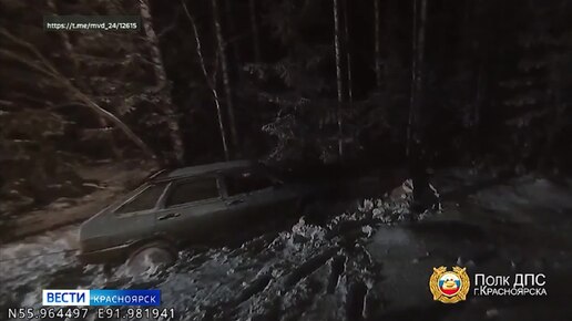 Красноярские госавтоинспекторы помогли водителю, который съехал в овраг на трассе