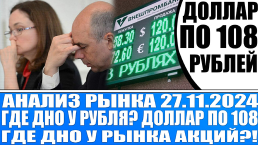 Анализ рынка 27.11 / Доллар по 108 , что происходит с рублём? / Товарный дефицит / Обвал рынка акций