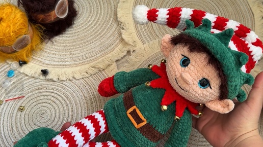 Новогодний эльф крючком // Подробный попетельный мастер класс // Часть 3 // Оформление игрушки //