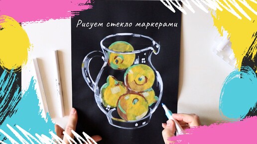 Рисуем маркерами лимоны в стеклянном кувшине.