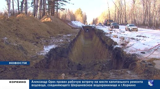 Александр Орел провел рабочую встречу на месте капитального ремонта водовода, соединяющего Шершневское водохранилище и город Коркино.