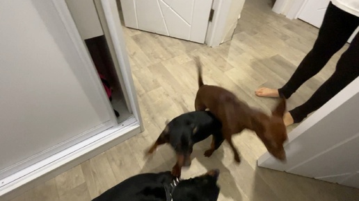 встреча троих цвергпинчеров в Казани на улице Сибгата Хакима. Лисица, Лакоста и Мальта