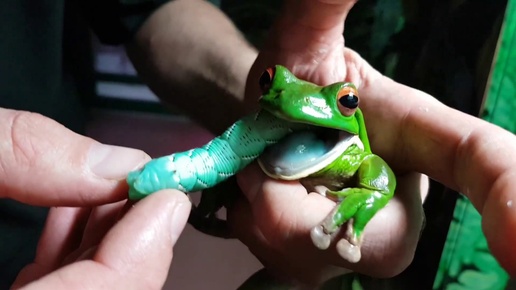 Впихнуть невпихуемое! Белогубая квакша vs гусеница бражника