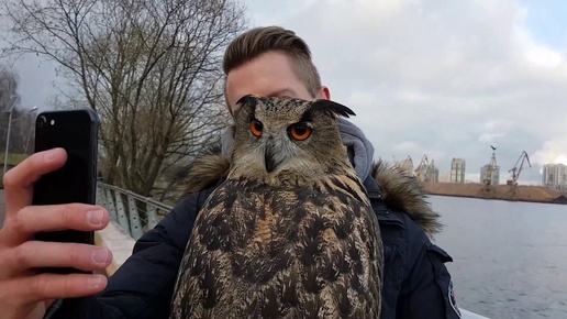 Прогулка с филином Ёлкой по набережной. Чем пахнет сова?