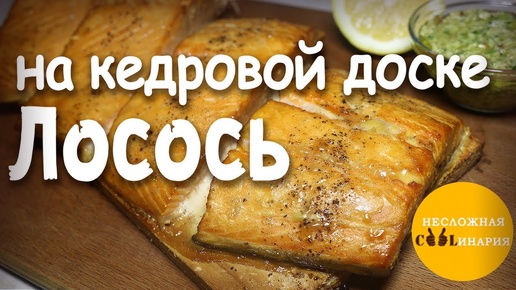 Лосось запеченный на кедровой дощечке в угольном гриле