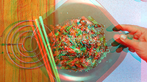 3D stereo red-cyan Вешенки в остром соусе по-японски