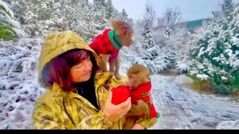 Я как Дед Мороз спрятал вкусные подарочки для любимых гамадрилят Степы и Мани! ЯБЛОКИ на СНЕГУ!!!