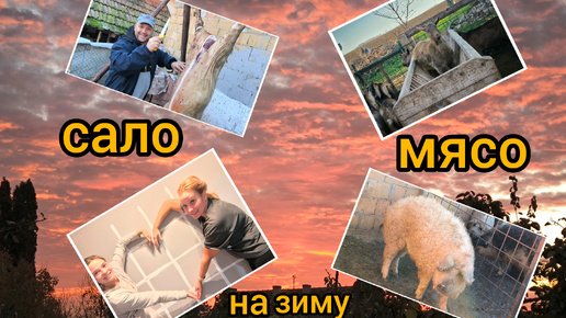 Кладём плитку, заготовили мясо, сало на зиму.