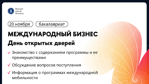 День открытых дверей программы «Международный бизнес» | Бакалавриат | НИУ ВШЭ | 20.11.2024