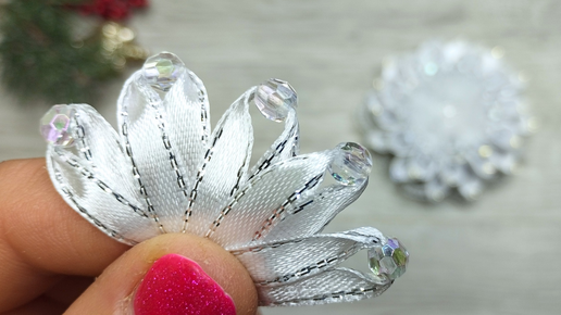 Пышные бантики канзаши из атласных лент и бусин Мастер класс