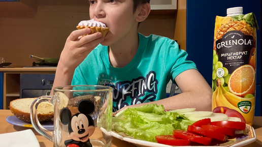 Мукбанг Бургер 🍔 сок 🥤 мульти фрукт 🍋🟩🍇🍌🍏🍊🍍🧁🧁 Протеиновые батончики Strong и 🍫Ritter sport