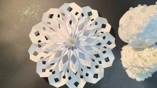 своими руками декор на 🎄Рождество, обьемная снежинка из бумаги ❄️
