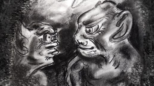 Рисуем Две Страшные Горульи, Готические рисунки углем