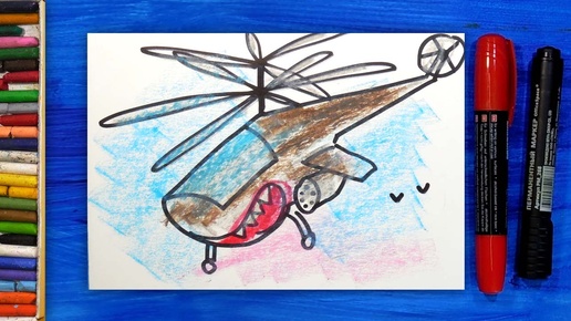Военный Вертолет Черная Акула на Открытке к 23 февраля, урок рисования открытки