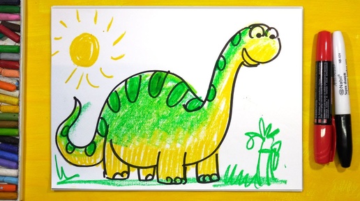 Как нарисовать Динозавра (БРОНТОЗАВР) | Урок рисования для детей от 3 лет