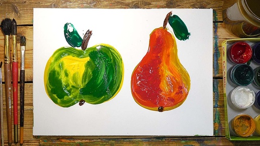 Как нарисовать Яблоко и Грушу | Простые рисунки красками | Урок рисования для детей