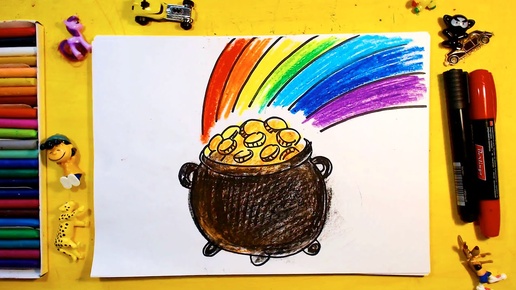 Как нарисовать ГОРШОК с ЗОЛОТОМ и РАДУГУ / Урок рисования для детей от 3 лет