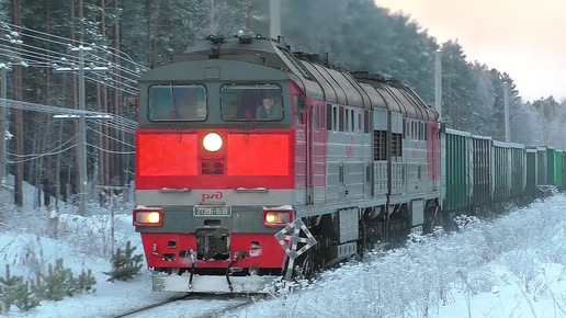 2ТЭ116-1638 с грузовым поездом следует через о.п. Никель
