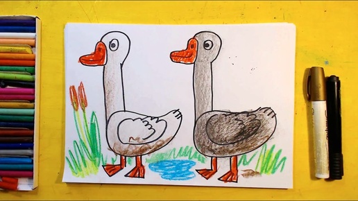 Как нарисовать ДВА ГУСЯ / Урок рисования для детей от 3 лет