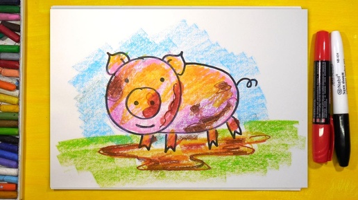 Как нарисовать Свинку или Поросенка, Урок рисования для детей от 3 лет