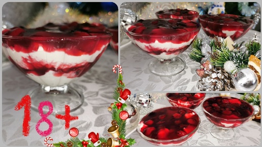 Меню на Новый Год 2025🎄 🎄 🎄 ДЕСЕРТ для взрослых. ПЬЯНЫЙ вишневый кисель с ТВОРОЖНЫМ кремом. 18+