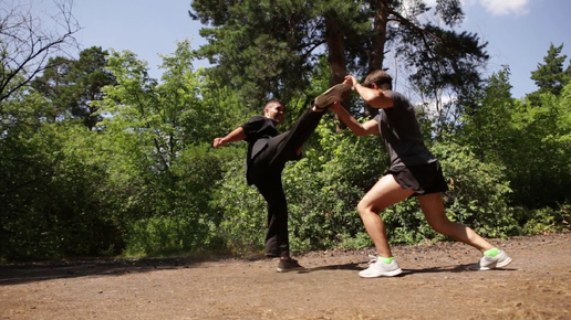 Иногда отрабатываем удары ногами в таком формате