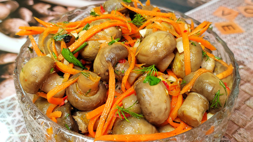 Закусочные шампиньоны по-корейски быстрого приготовления на праздничный стол. Грибы по-корейски.
