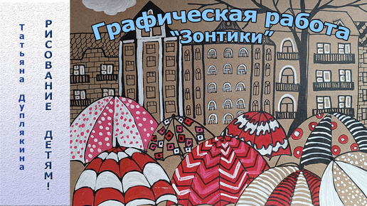 Рисуем чёрным маркером и гуашью на крафт бумаге "Зонтики"