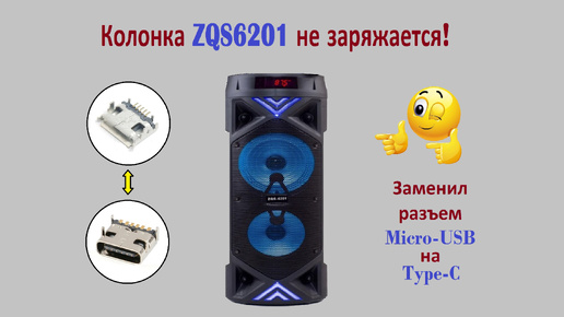 Ремонт блютуз колонки ZQS6201 не заряжается!