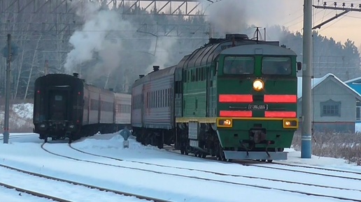 Встреча пригородных поездов на станции Березит. ТЭП70-0520 и 2ТЭ116-1255 секция А