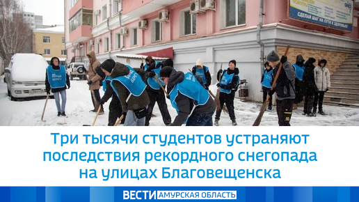Три тысячи студентов устраняют последствия рекордного снегопада на улицах Благовещенска