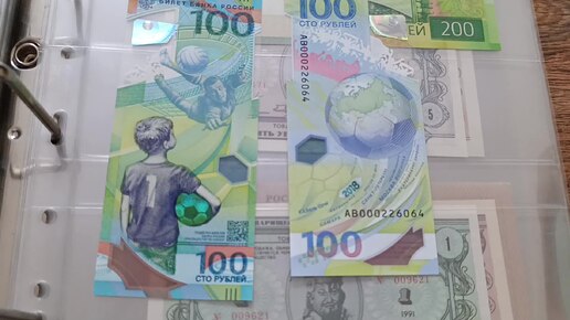 Сколько сегодня стоит первая пластиковая купюра России 100 рублей "Футбол"