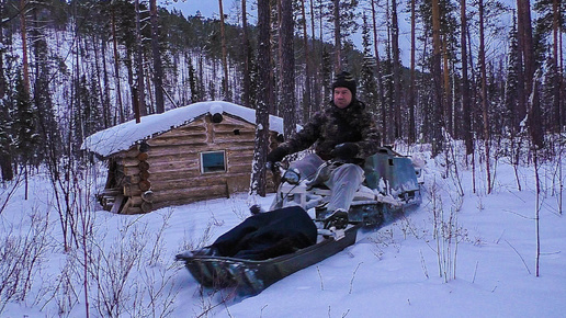 Отдыхаю в избушке, проверяю путики. Поставил новую ловушку и выехал домой.