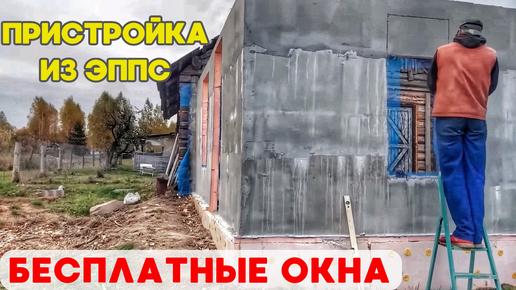 Установили бесплатные окна и самодельную тёплую дверь в бескаркасную пристройку из ЭППС за один день