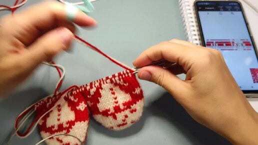 Далее: Вяжу варежки двусторонним жаккардом от пальчиков