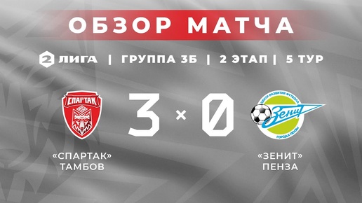 Вторая лига | 2 этап | 5 тур | Обзор матча «Спартак» (Тамбов) — «Зенит» (Пенза) [3:0]