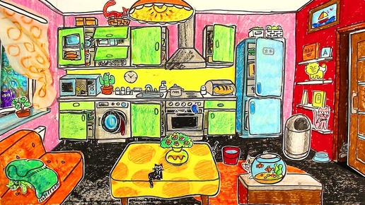 Как папа рисует КУХНЮ для КОШЕК / игра для детей своими руками