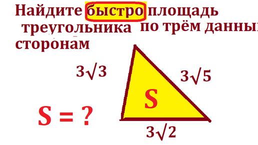 Найдите быстро площадь треугольника по трём данным сторонам 3√2; 3√3 и