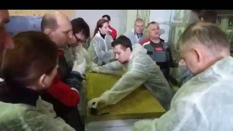 Семинар по утеплению фасадов, нанесение клея на минеральную базальтовую вату
