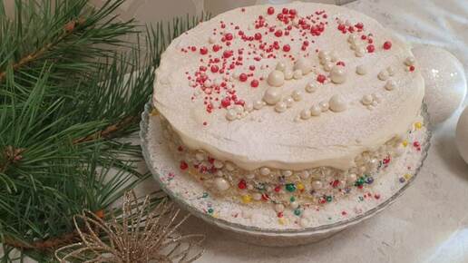 ⛄🎂Тортик очень вкусный и праздничный!💫Крем с белым шоколадом и кокосовой стружкой.🌫️☁️