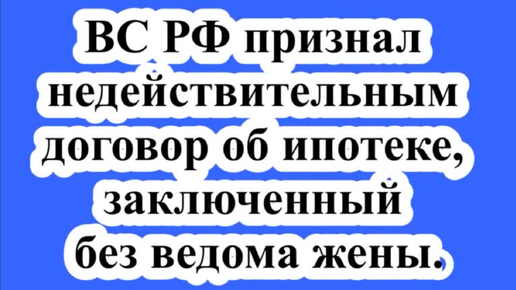 ВС РФ признал недействительным договор об ипотеке, заключенный без ведома жены.