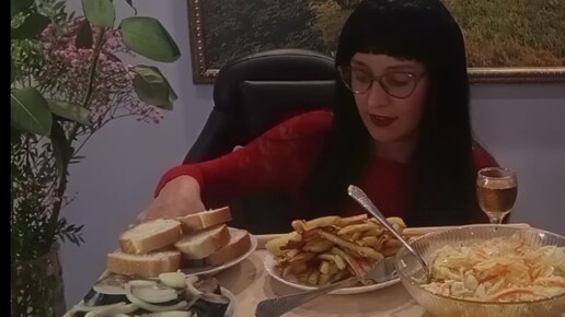 МУКБАНГ #ЖАРЕНАЯ КАРТОШКА /КВАШЭННАЯ КАПУСТА/СКУМБРИЯ ВЯЛЕНАЯ/БАЛАНТАЙС.С днём рождения меня🥃😄😄😄🍞🍞🍞🍟🥬🥬🍛🍛🍛🍷