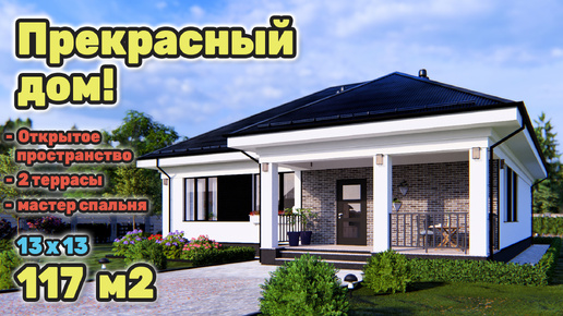 Прекрасный проект дома с открытым пространством и уютной террасой. S-283