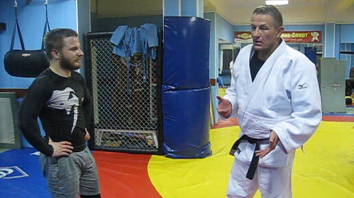 2015 год. С захватом за голову перевод в партер броском через голову голенью и скручиванием.