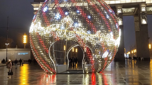 ВДНХ в новогоднем уборе. Гигантский елочный шар