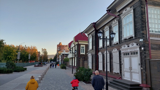 Исторический квартал в Красноярске - несколько восстановленных деревянных зданий конца XIX - начала XX века и симпатичный дом-ротонда